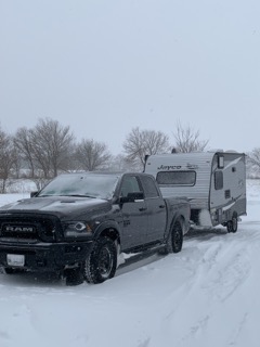 We got lucky because of a number of things. We have winter tires on the truck, not the trailer, but the truck is doing the pulling. Winter tires make a huge difference. When we needed to grip ice, or punch through snow, the tires were able to find the traction we needed. Our truck is also four wheel drive. And my husband knows winter driving. All of these things definitely helped.