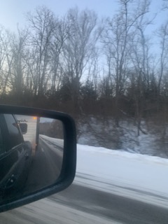 By the next morning, Friday, the storm was over. The roads were moving. The hotels were clearing. As we traveled south, we still hit ice on the roads. The north bound lanes in particular were skating rinks. Even though the sun was out, we watched as truck after truck skidded off the road into the ditch. Southbound lands were slightly better. There was one lane of mostly clear road which we all stayed in it.